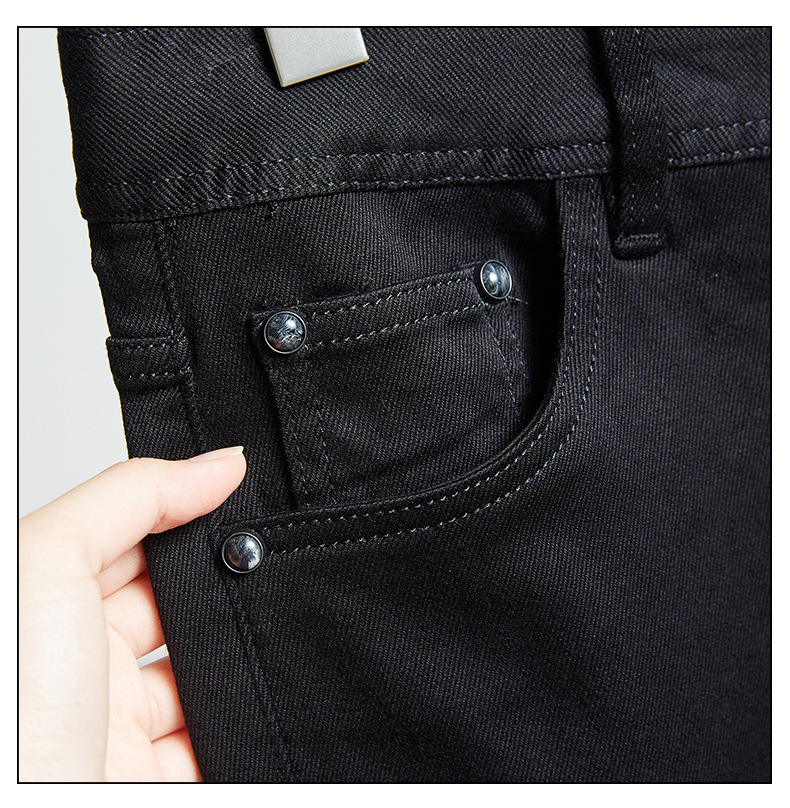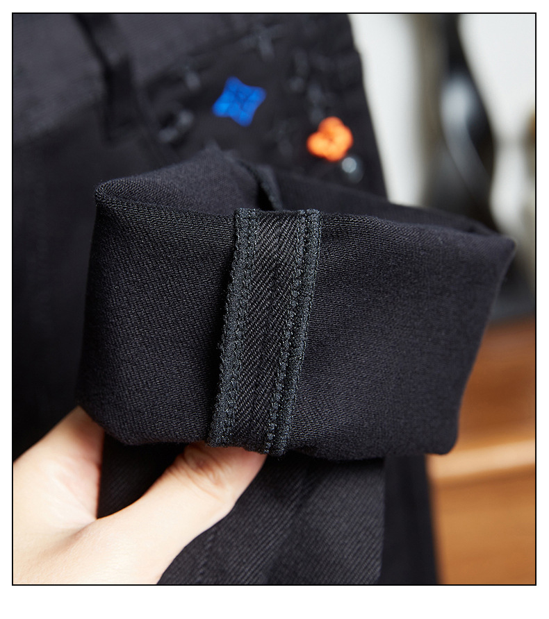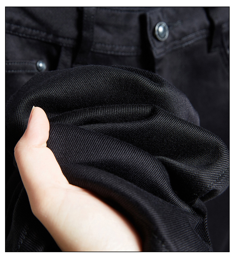 2025秋冬新款男士纯黑厚款牛仔裤弹力修身小直筒潮牌百搭休闲长裤