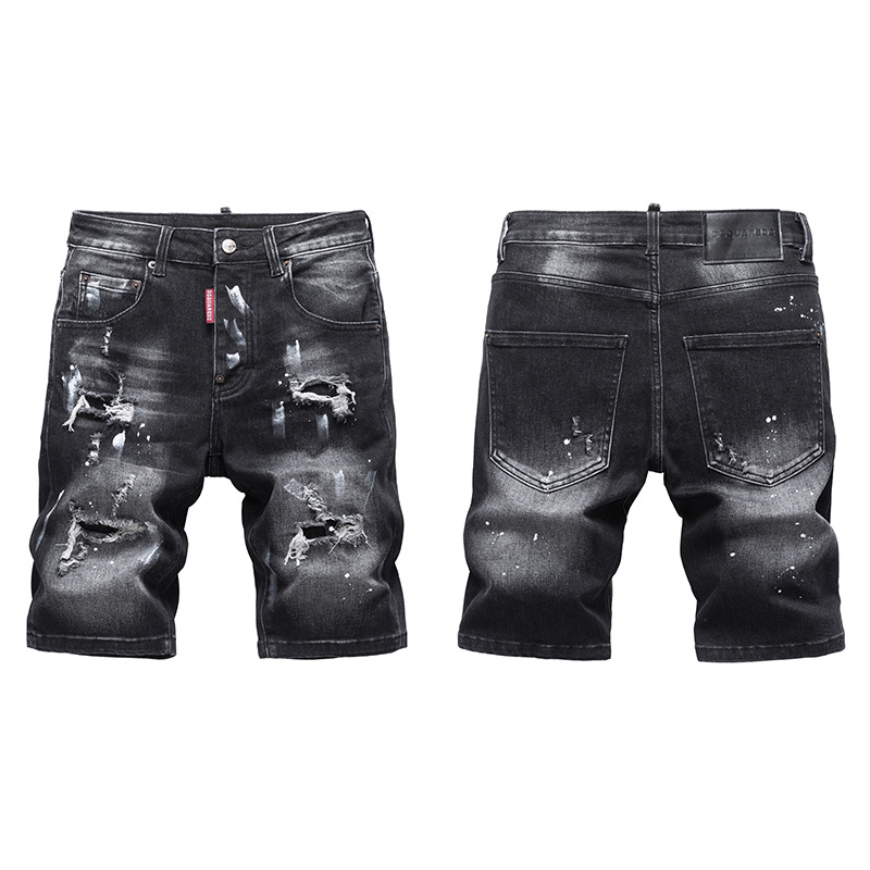 夏のトレンドブランドスプラッシュインクプリントデニムショートパンツメンズリッピングパッチストレッチスリムフィットミッドパンツファッショナブルでカジュアル