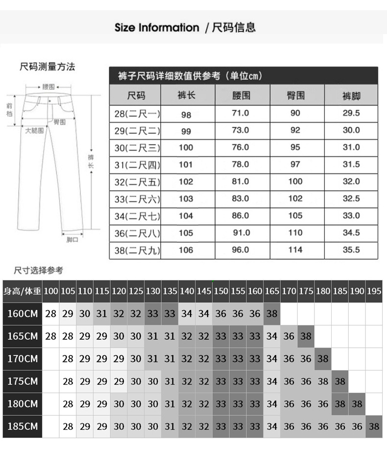 尺码 28,29,30,31,32,33,34,35,36,38