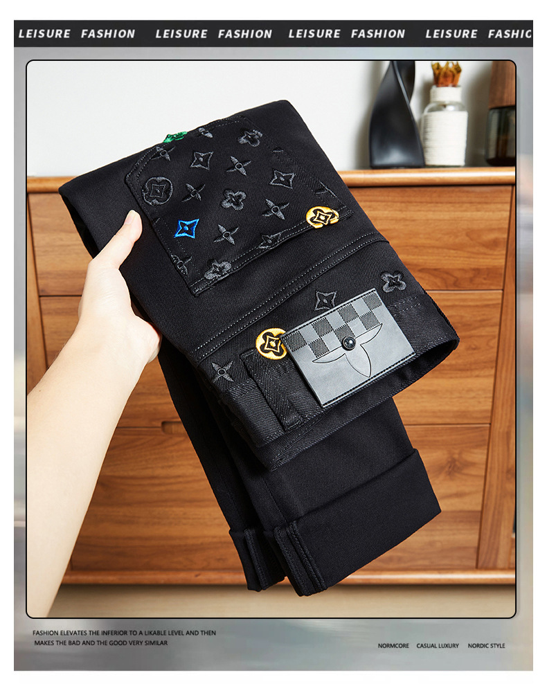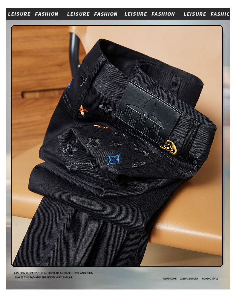 潮牌字母刺绣牛仔男2025秋季新款时尚百搭弹力修身青年个性长裤