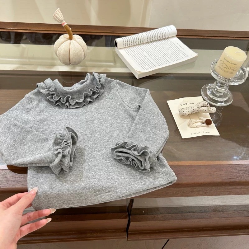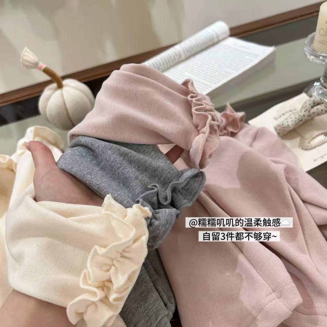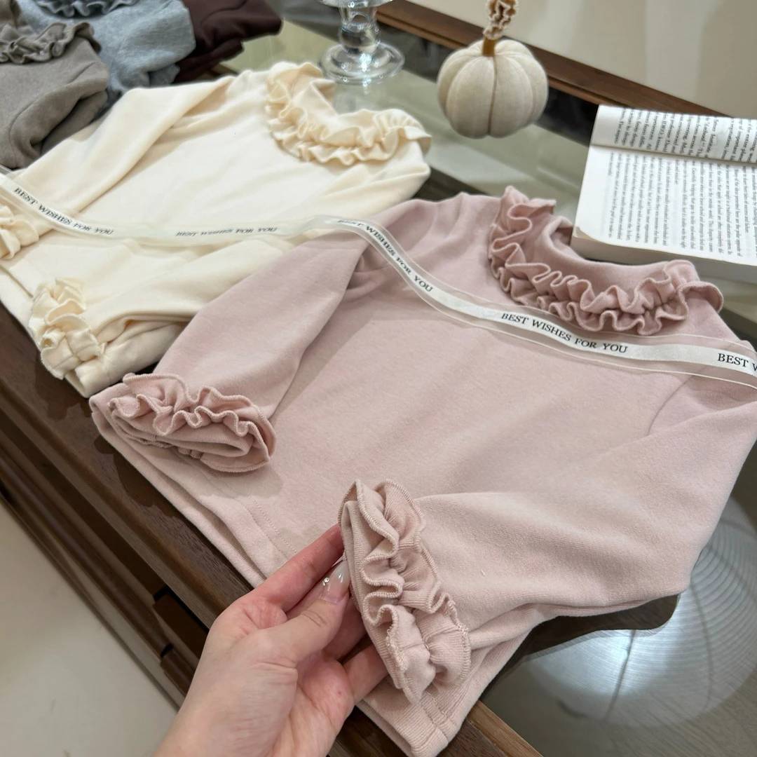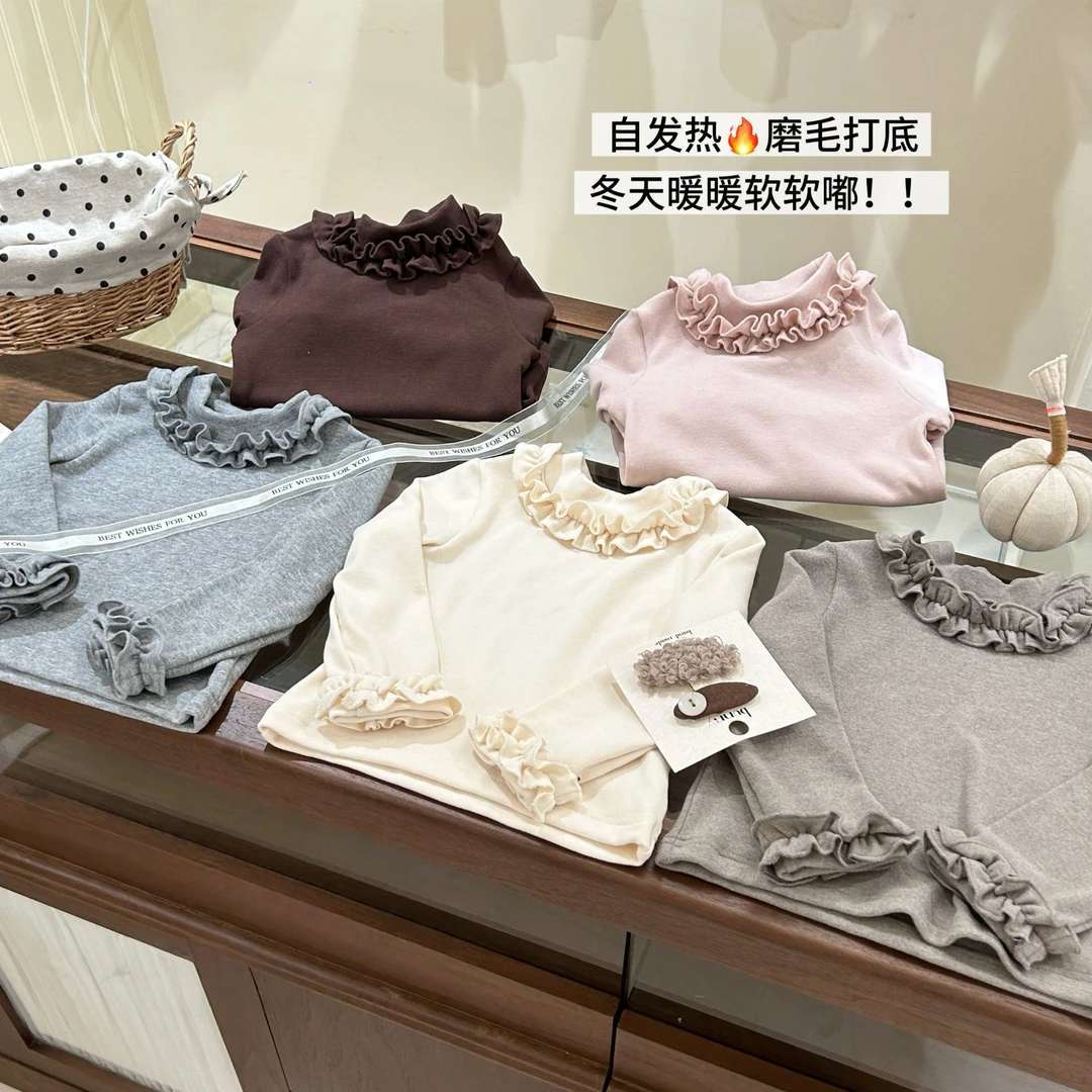 【甜小司】加厚!自留冬季女童打底衫磨毛洋气韩版木耳边长袖内搭