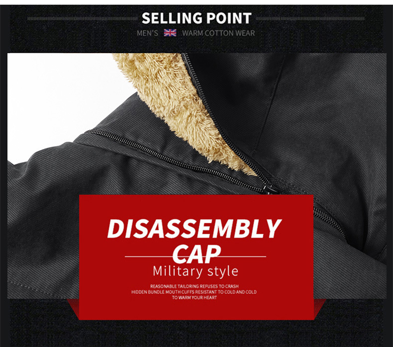 越境冬服の中長タイプの綿服の男性とベルベットの厚いサイズの中高年保温綿服の帽子付きコートメーカー