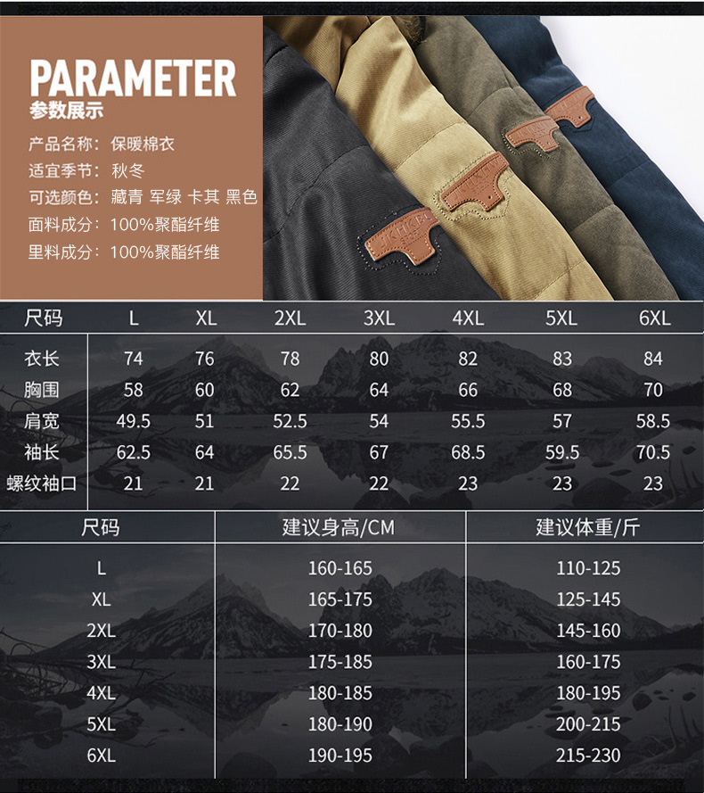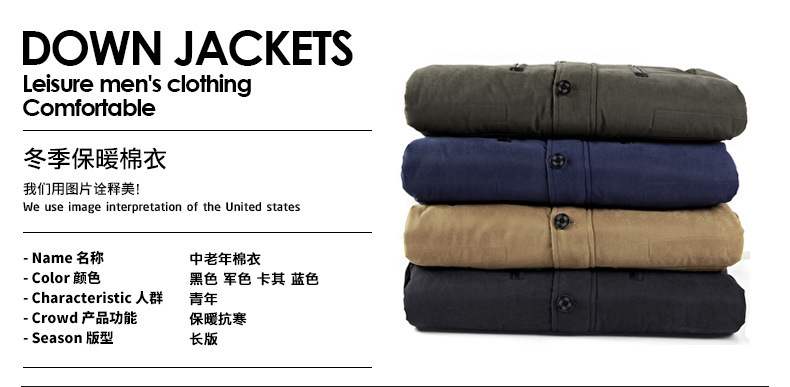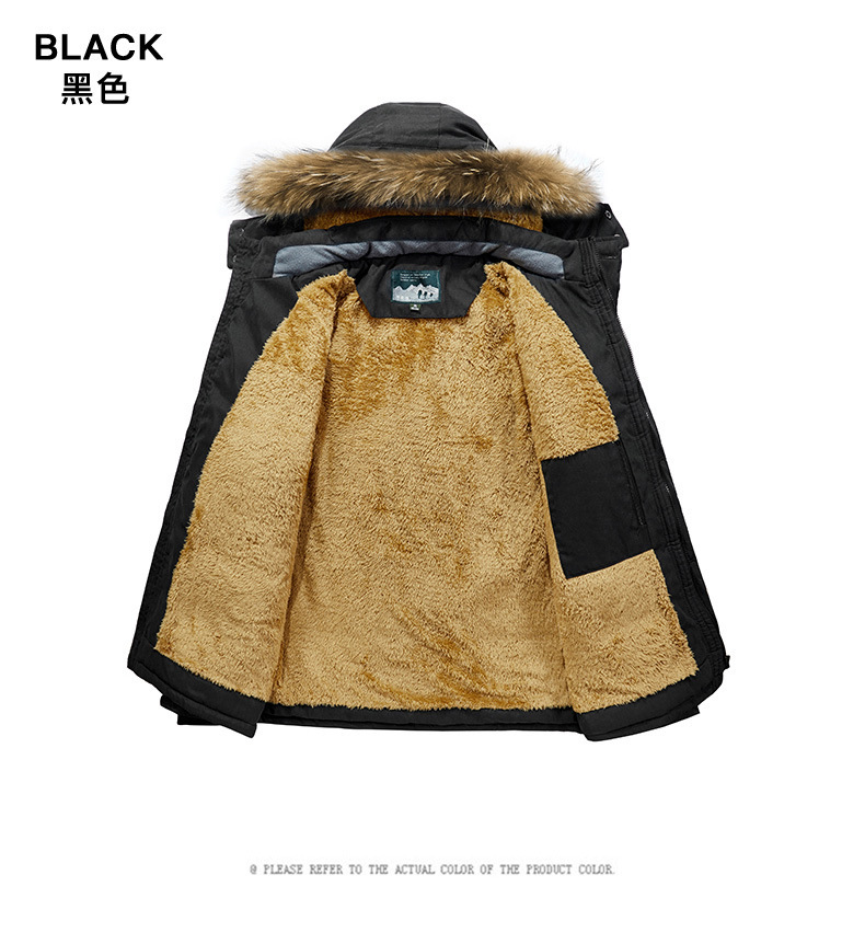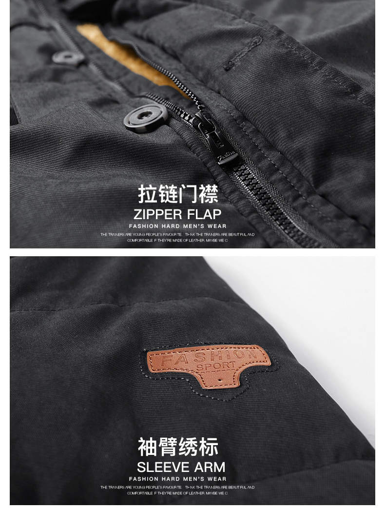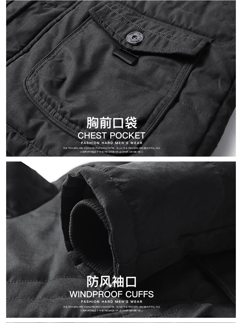 亚马逊男士棉衣冬季中长款加绒加厚棉服男中青年休闲防风保暖棉袄