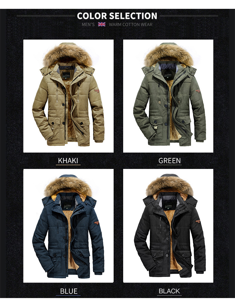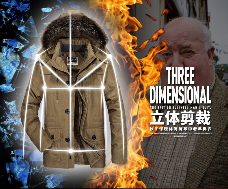 跨境冬装中长款棉衣男加绒加厚大码中老年保暖棉服连帽外套厂家