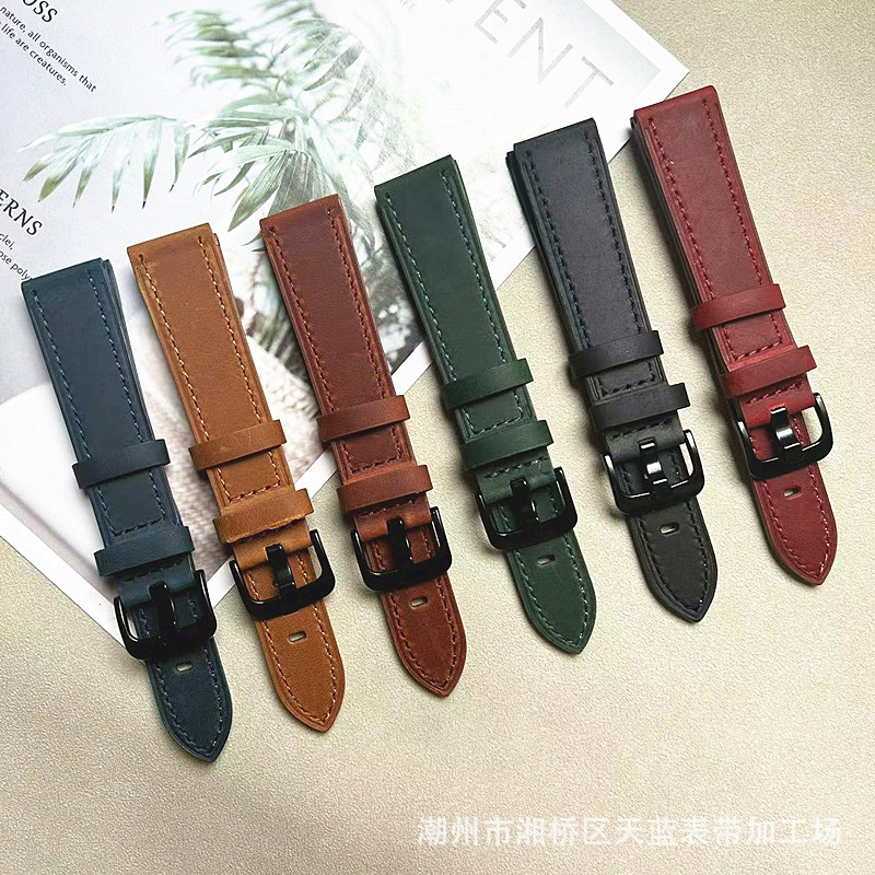 狂馬頭層牛革真皮バンド油蝋皮復古腕時計バンド針バックルは華為リンゴなどの腕時計に適用されている