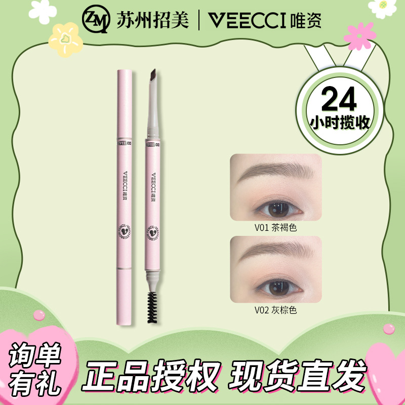VEECCI/唯资斜切细致先锋眉笔持久上色双头眉笔顺滑不易晕染眉粉