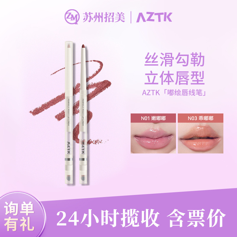 AZTK箐之唇线笔刷勾勒唇型晕染唇刷带盖显白学生裸色顺滑口红唇笔
