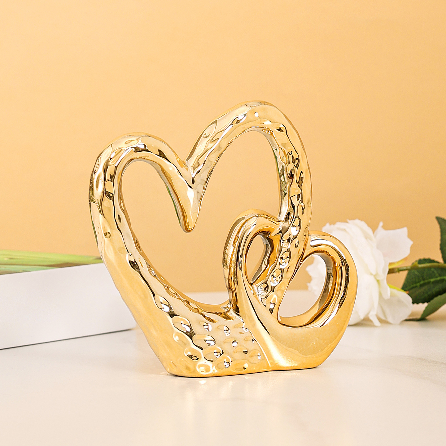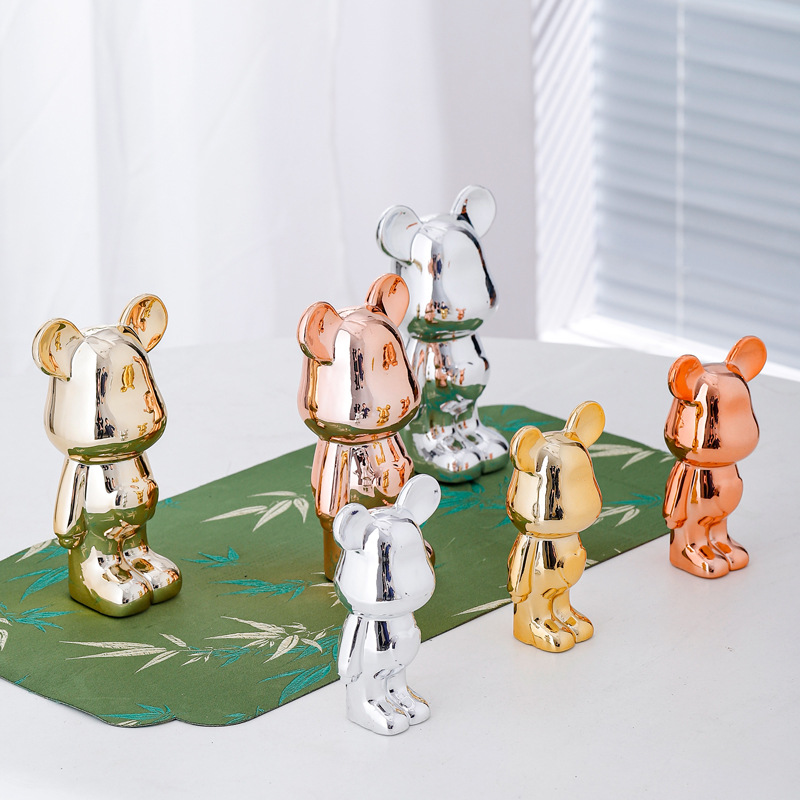 陶器メッキのハート型の暴力的なクマの置物、本棚の装飾、リビングルーム、玄関、テレビ台、カップルへのギフト、流行の玩具