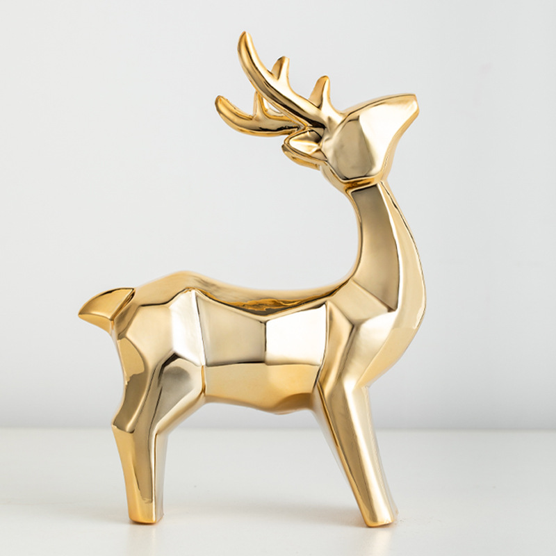 大型陶器の鹿の置物、白磁の本棚飾り、書斎やリビングのクリスマス飾り、陶器の置物