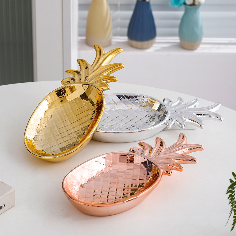 軽奢な陶磁器工芸品、白磁のパイナップルフルーツプレート、書棚飾り、置物、レストランや茶室の装飾、エレガントな金の手作り品。