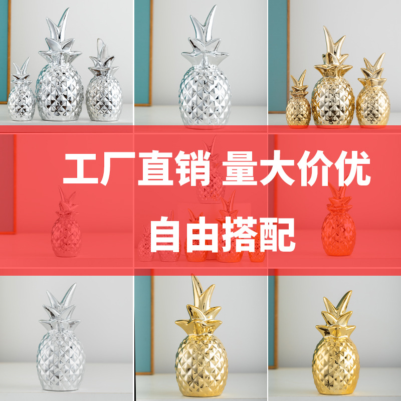 ヨーロッパセラミックパイナップル装飾品金メッキ銀メッキ本棚装飾装飾品リビングルームワインキャビネット研究装飾品