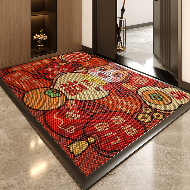 入户门地垫2025新款红色喜庆门口脚垫家用玄关防滑耐脏地毯可裁剪