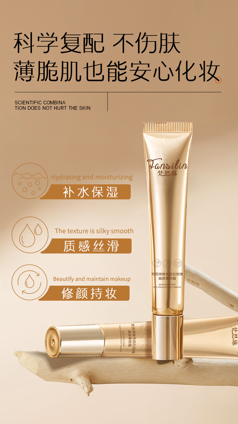 严选梵思琳玻色因白玫瑰面部素颜霜遮瑕打底素颜霜滋润肌肤学生党