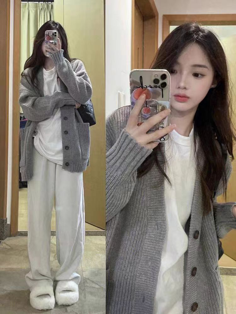 怠惰なセーターのコートの女性は、秋には2024年に新しいニットカーディガンを春と秋に着ている