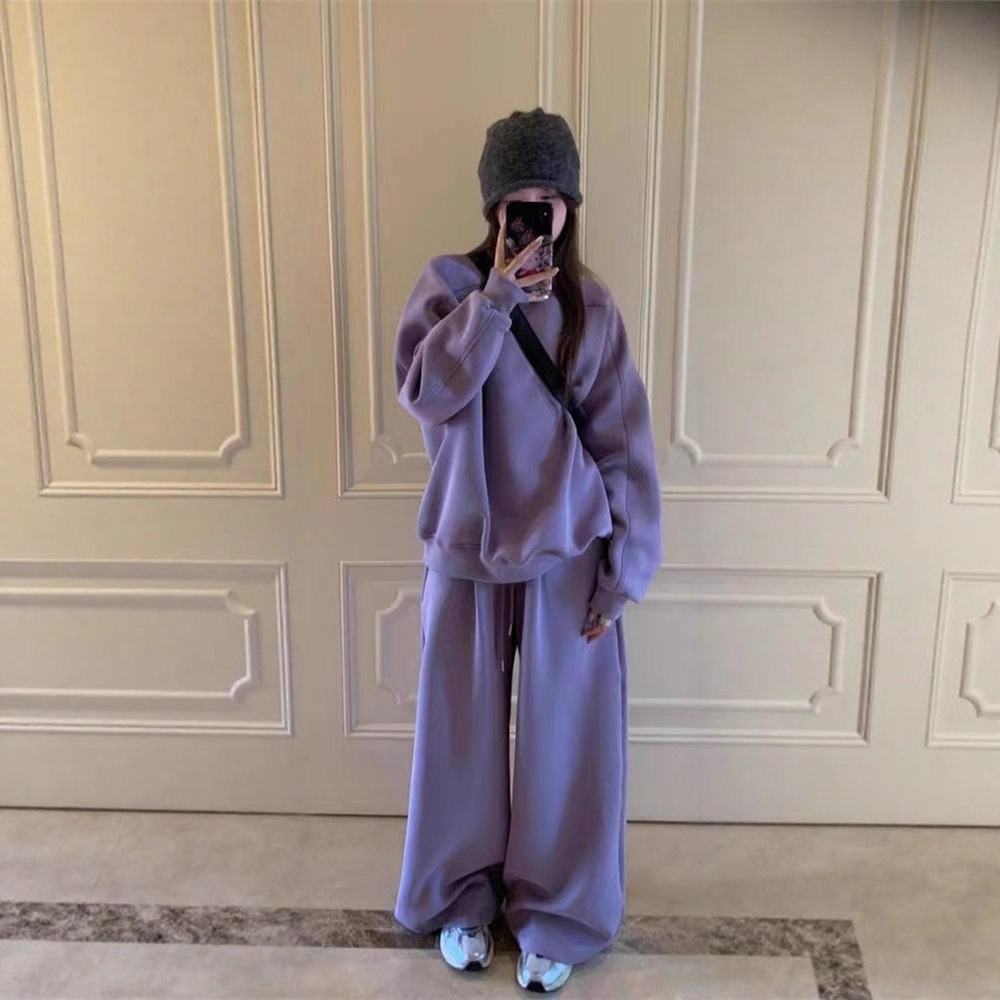 oversize休闲套装女秋冬新款慵懒感宽松卫衣阔腿裤运动两件套