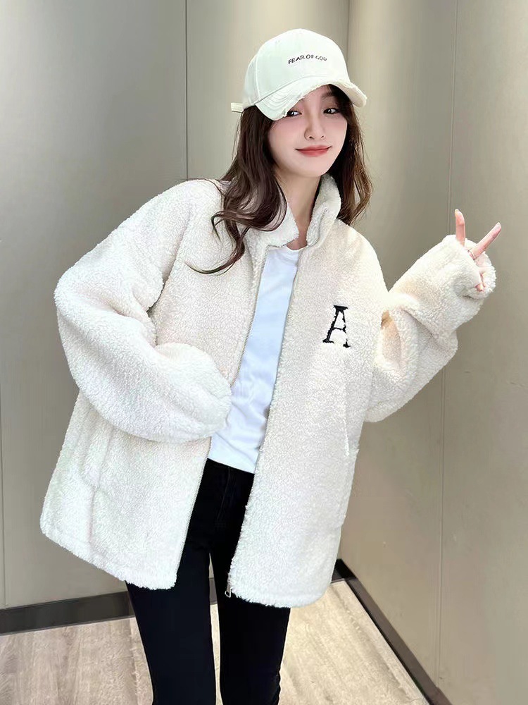 スタンドカラーのアルファベットがゆったりしていて、やせています。子羊の毛が厚くて暖かいコートです。