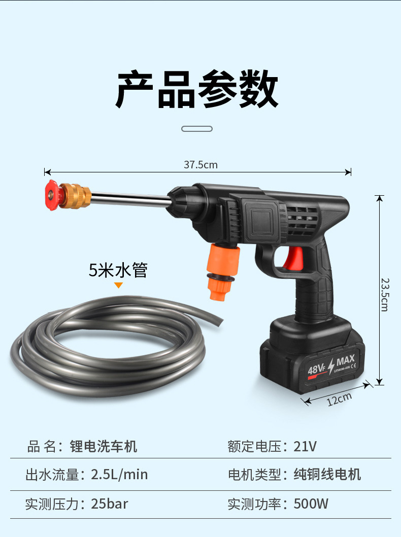高压水泵锂电洗车机无线清洗机便携式洗车水枪家用大功率浇花神器