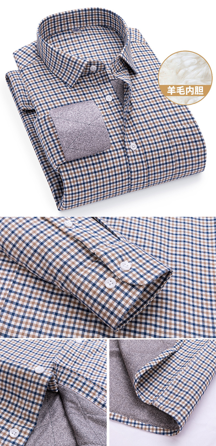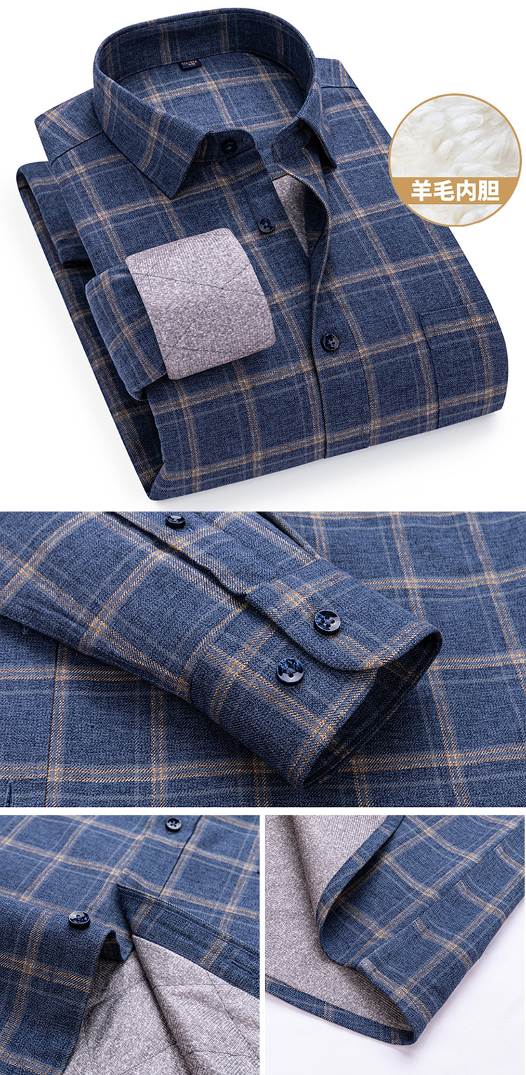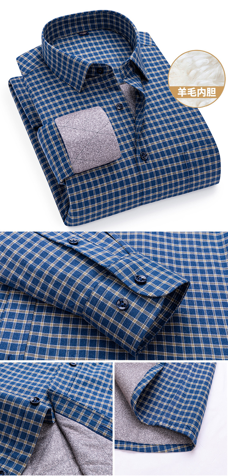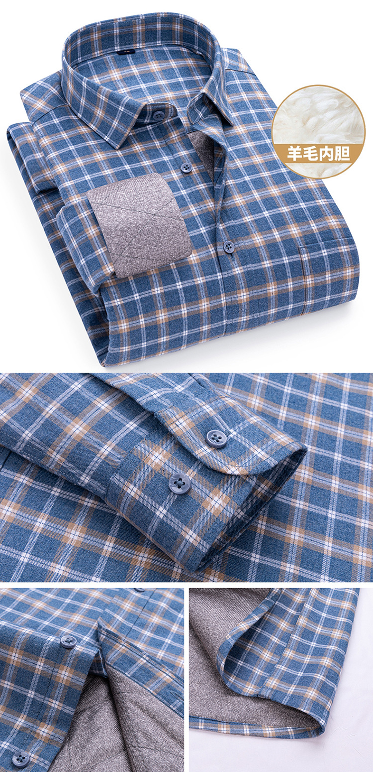 2025秋冬纯棉羊毛加厚格子衬衫男士抗皱保暖衬衣商务休闲衬衣男