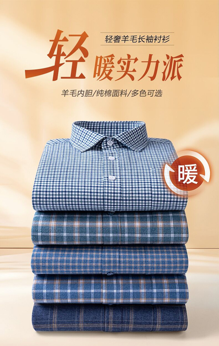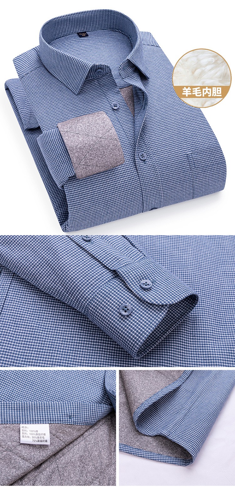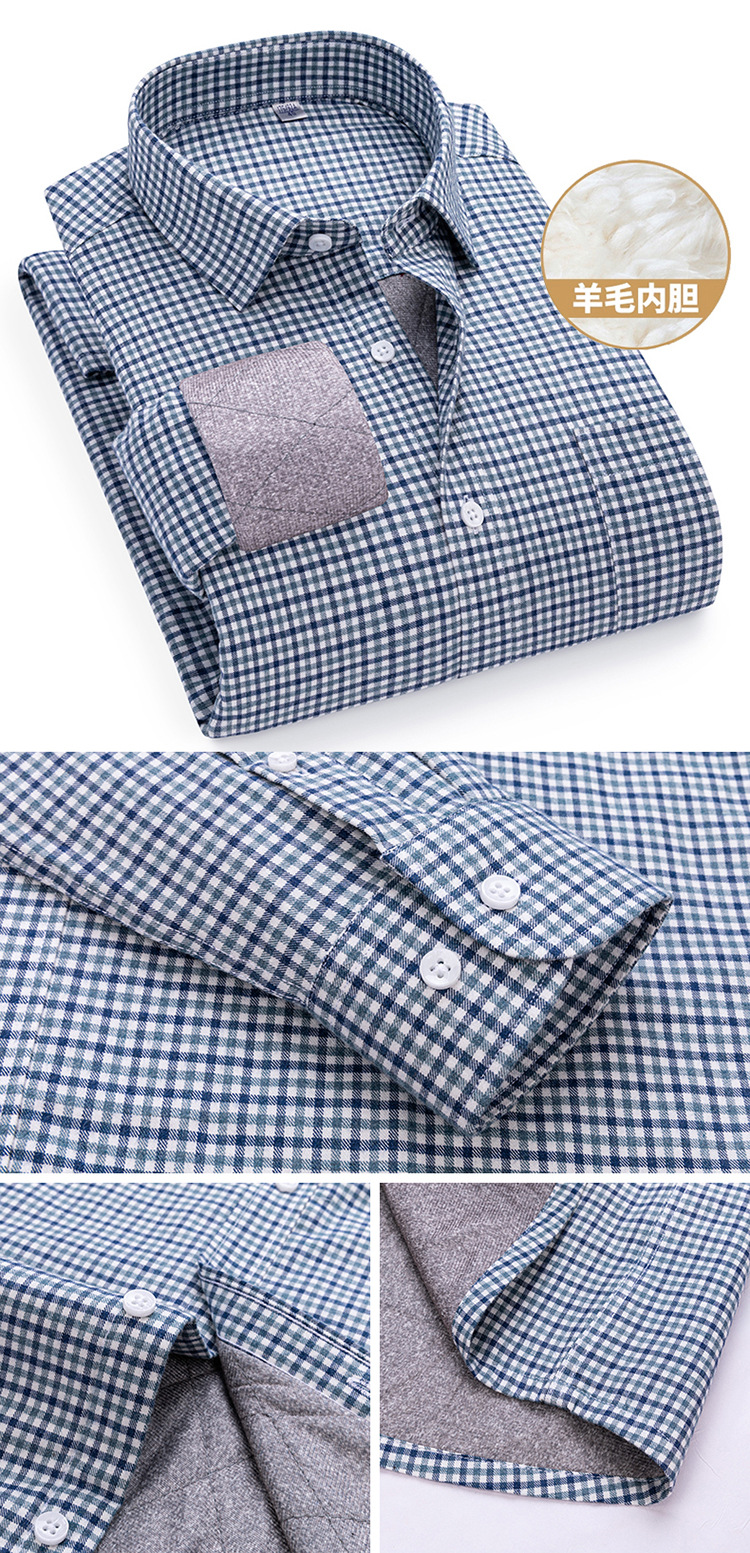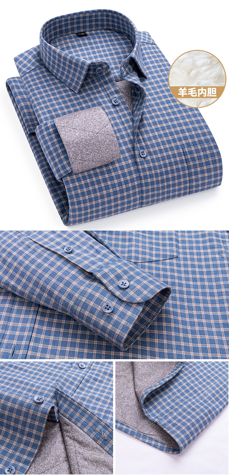 2025秋冬纯棉羊毛加厚格子衬衫男士抗皱保暖衬衣商务休闲衬衣男
