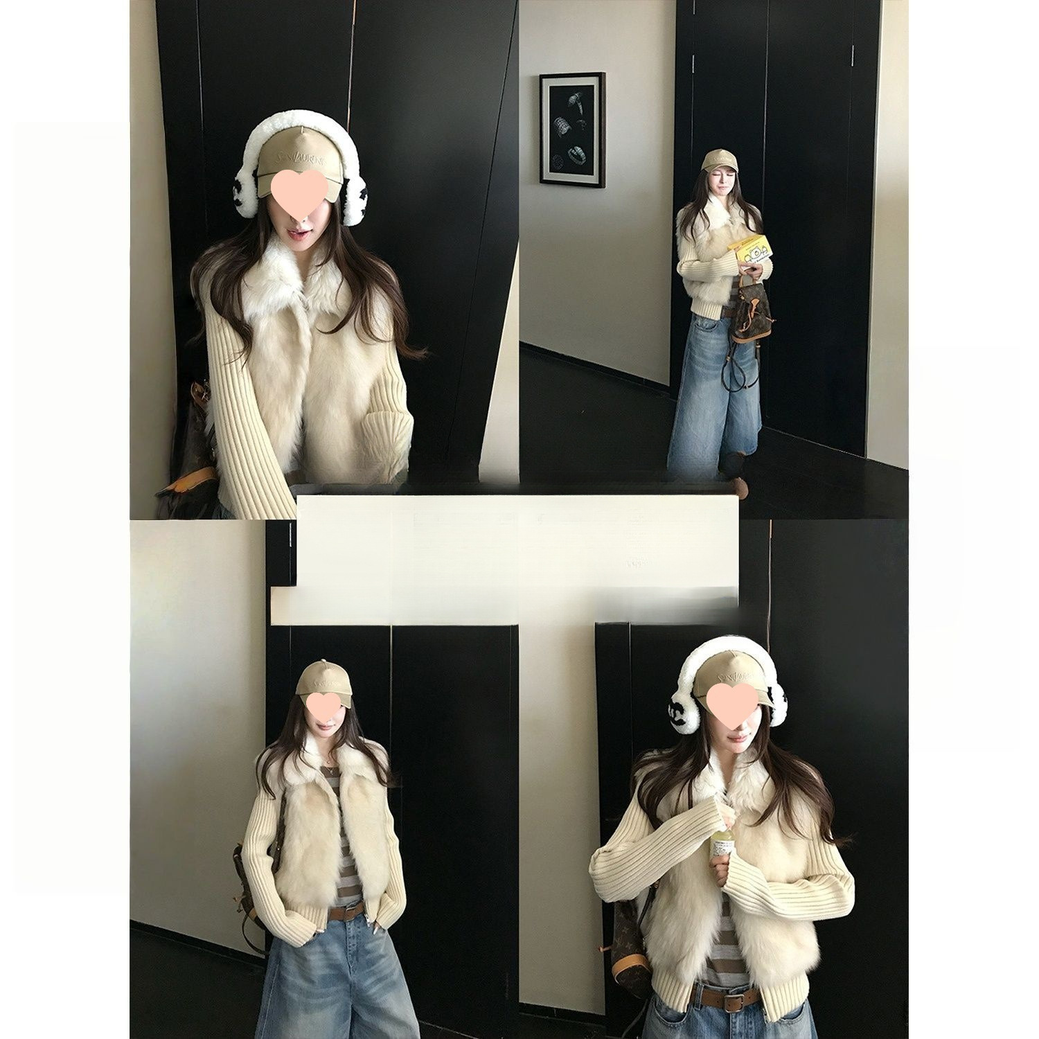 毛绒暖暖!甄选国王托卡皮毛一体外套翻领拼接针织一体厚皮草