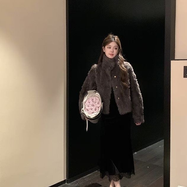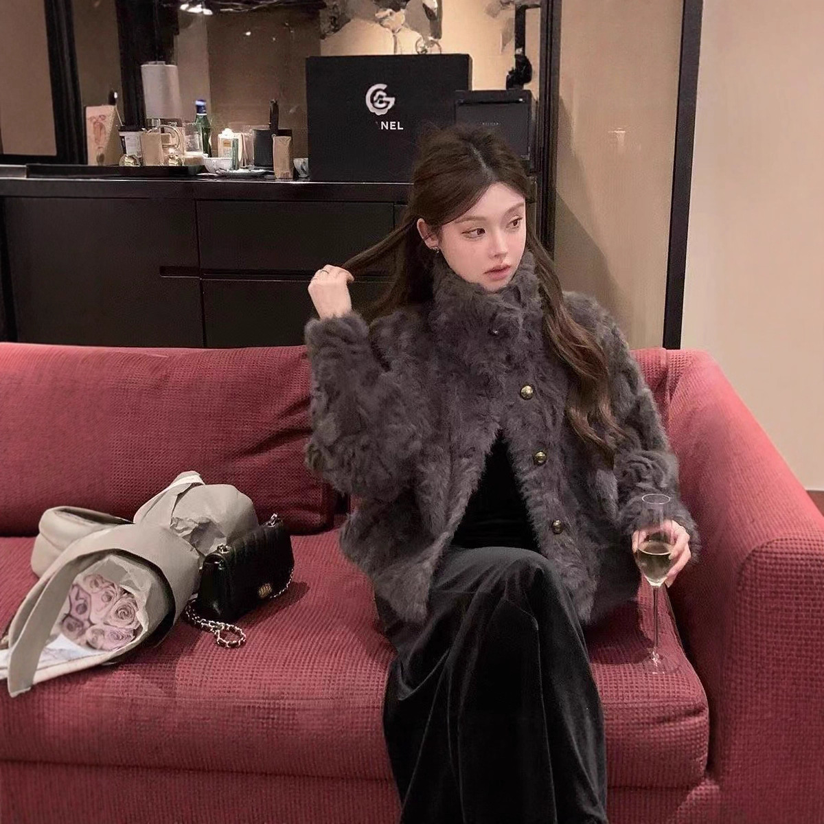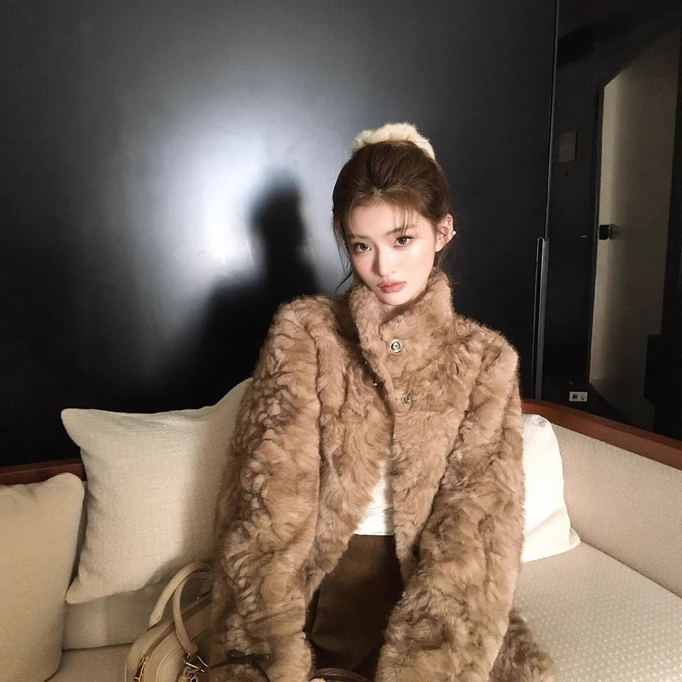 2025新款羊羔毛外套女环保皮草冬季宽松加厚短款立领大衣加棉保暖