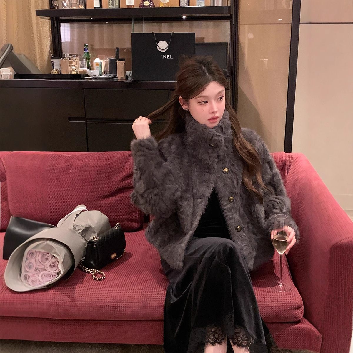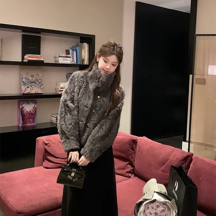 2025立领皮毛新款一体水貂绒短款环保仿皮皮草外套毛毛加厚外套女