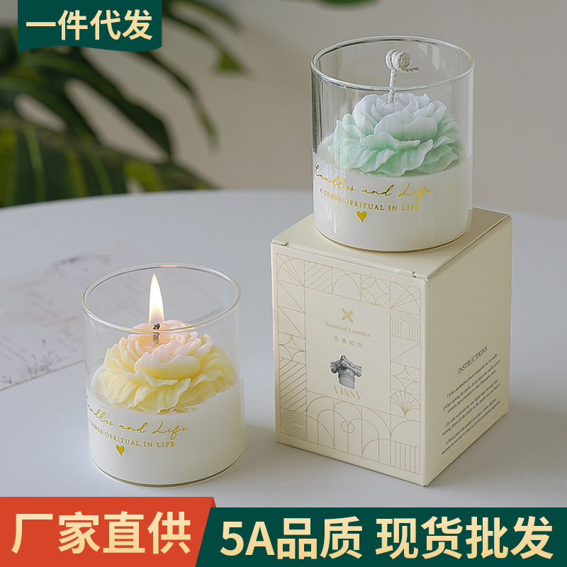 现货亚马逊香薰蜡烛香氛小牡丹花大豆蜡烛香薰礼物节日伴手礼摆件
