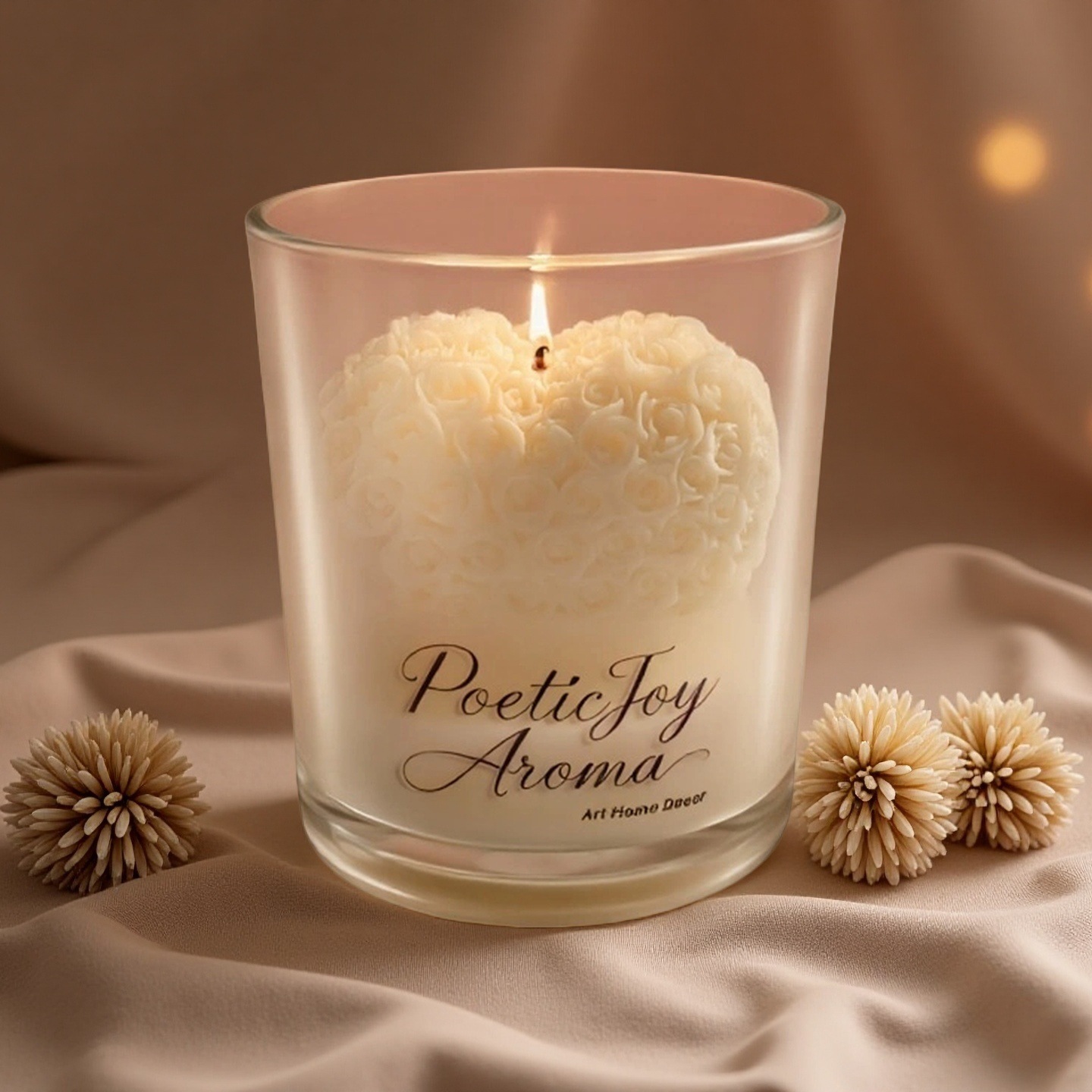 情人节爱心玫瑰玻璃杯蜡高级氛围感造型蜡烛香氛家居装饰香薰蜡烛