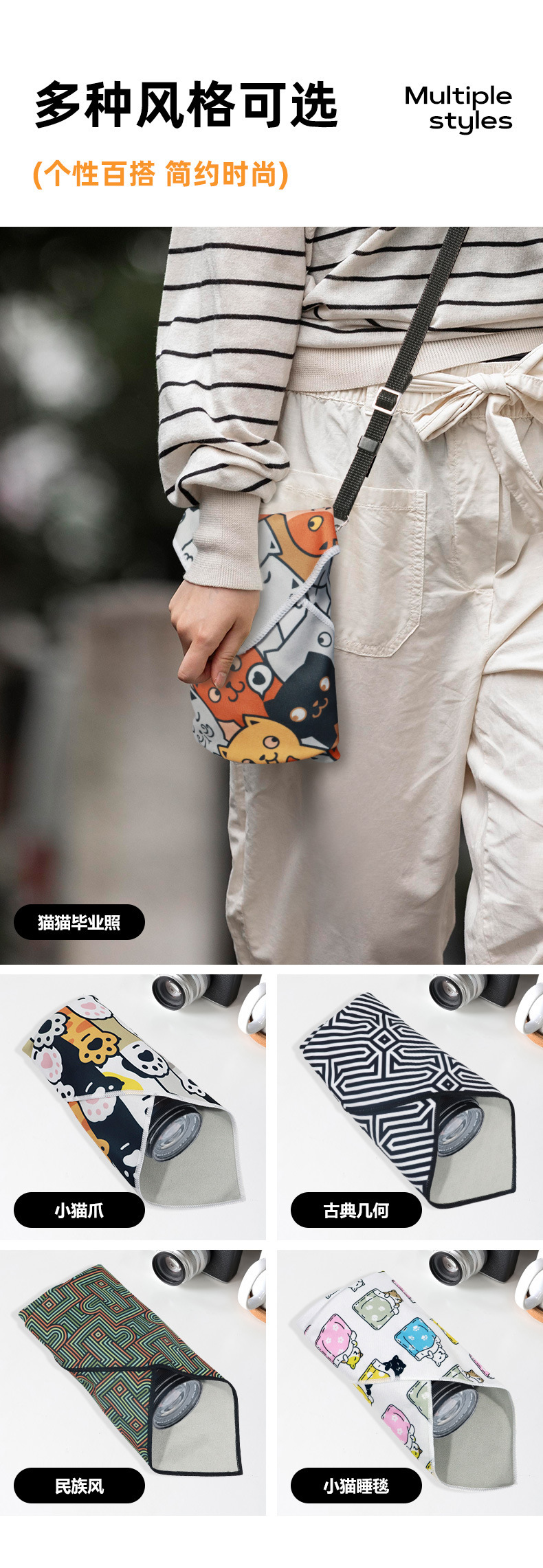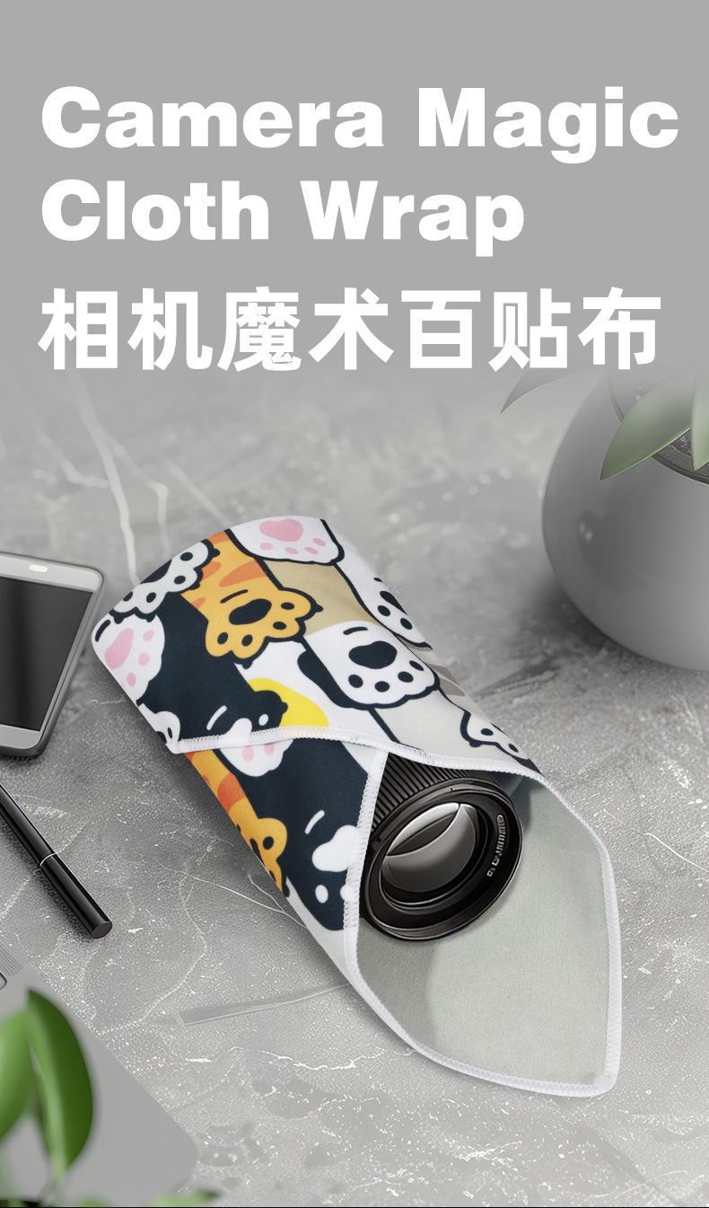 特殊形状のパッチワークカメララッピングクロス、化粧品レンズ収納クロス、耐衝撃マジック粘着式猫用ラッピングクロス 100% off