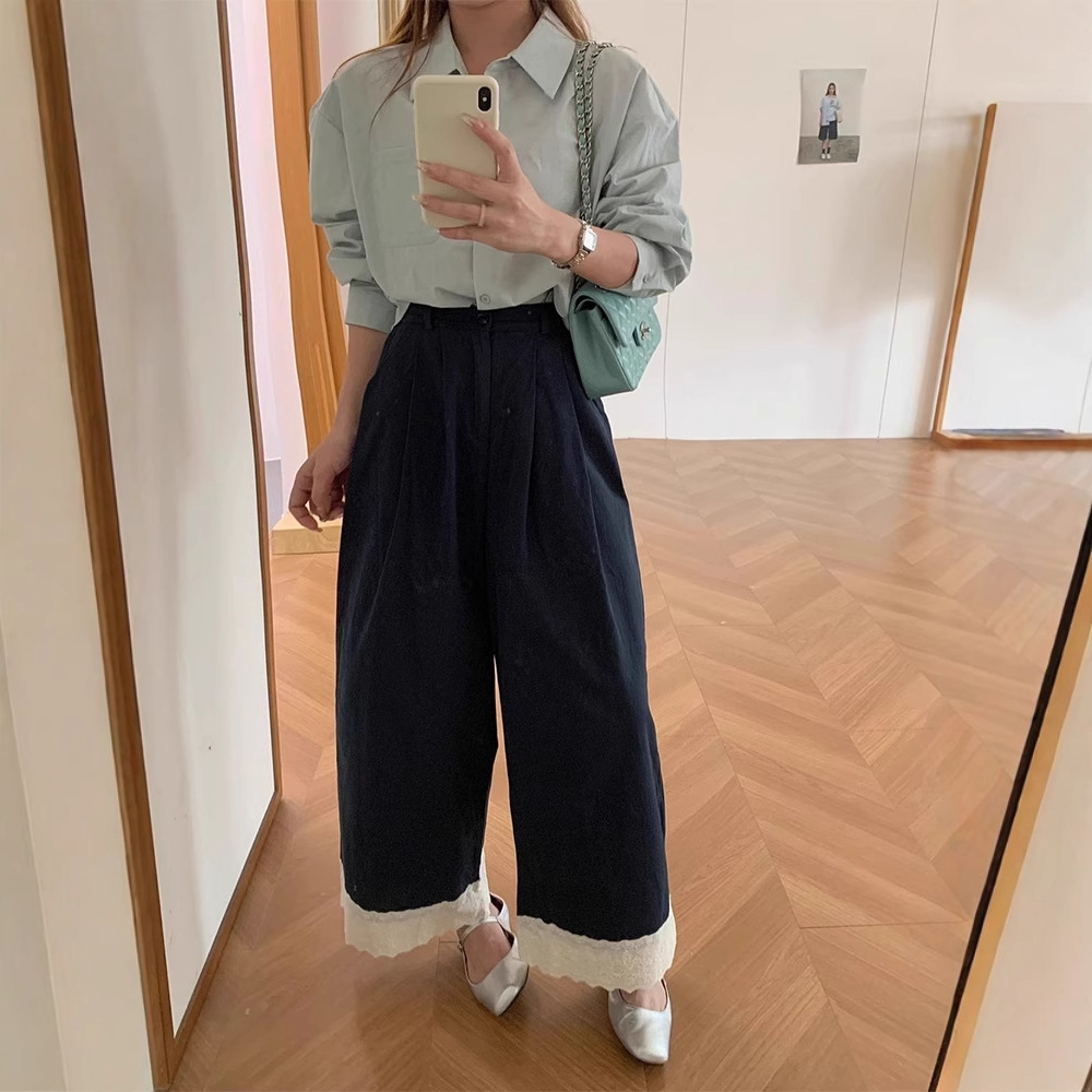 紺色の韓国系レースのストレートパンツ女性2025春夏新作カジュアルワイドパンツ