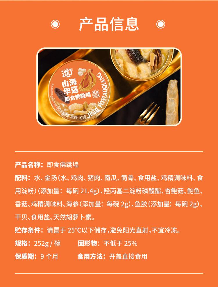 即食佛跳墙代发 常温储存礼品装 航天杀菌技术 支持小批量团购