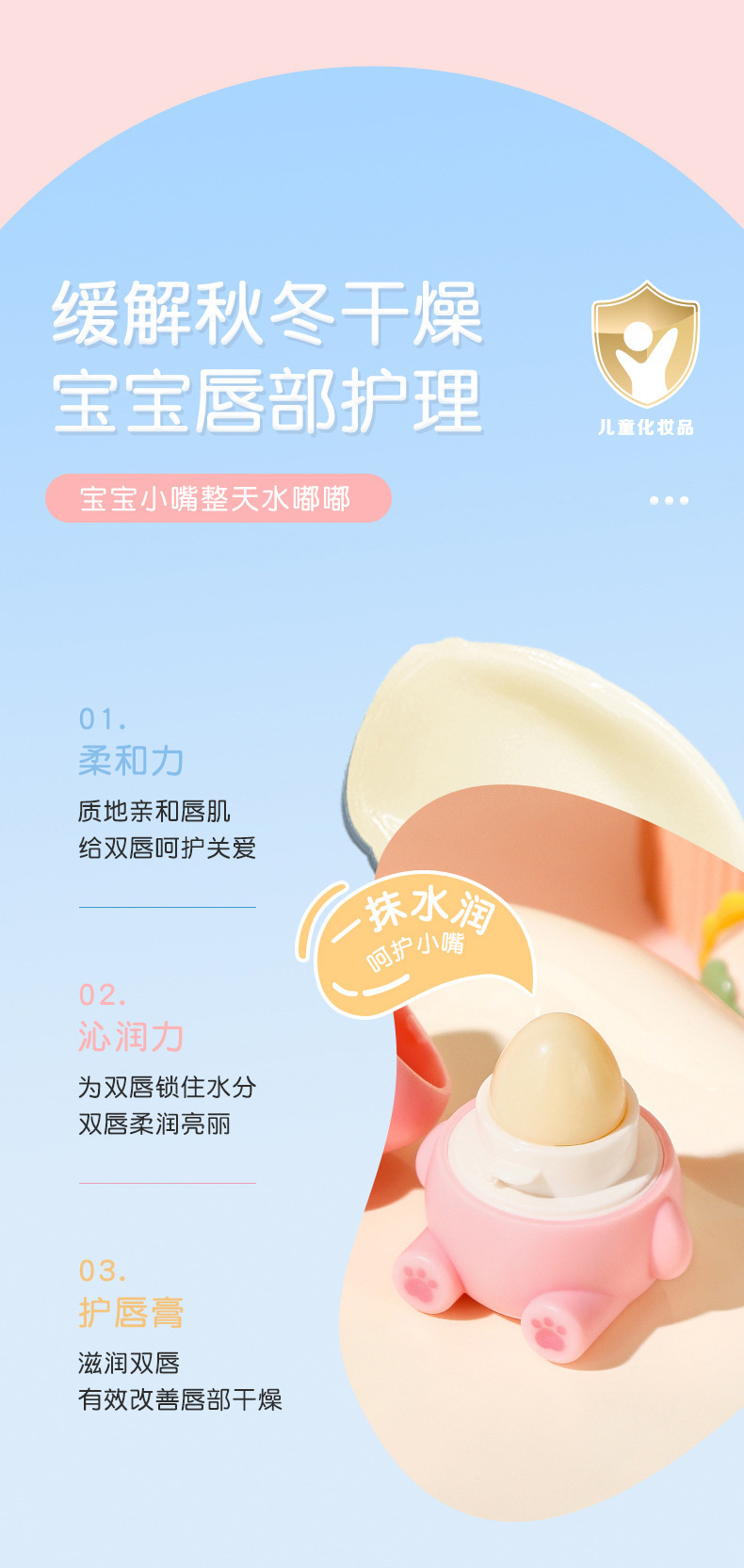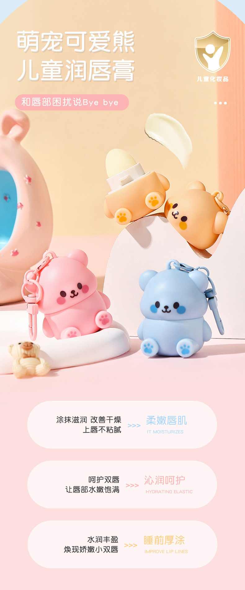 娇之物语小金盾儿童小熊润唇膏滋润保湿起皮宝宝护唇膏厂家代发