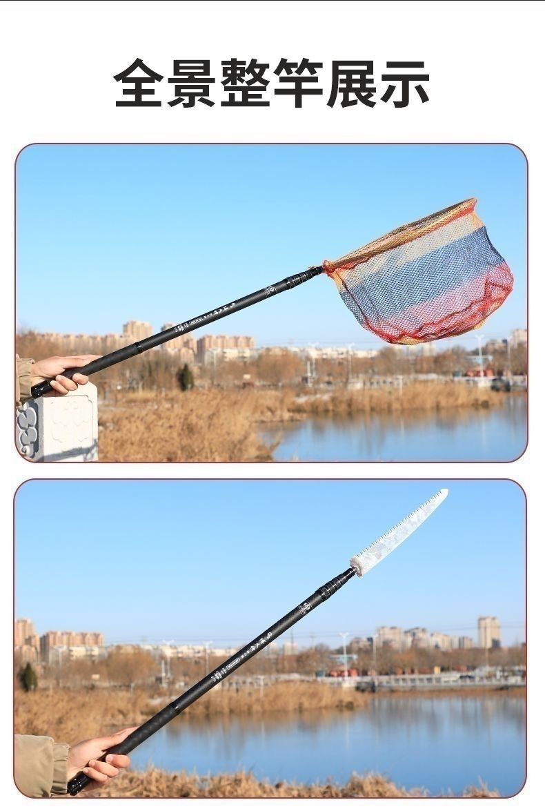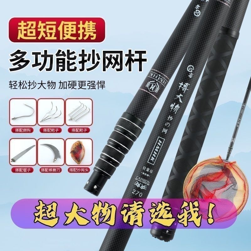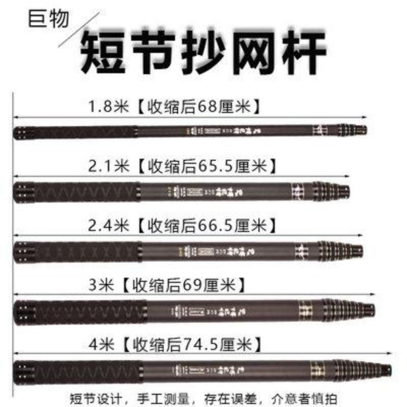 短节伸缩大物抄网竿加厚碳素超硬便携抄网杆捕鱼杆加固接口通用