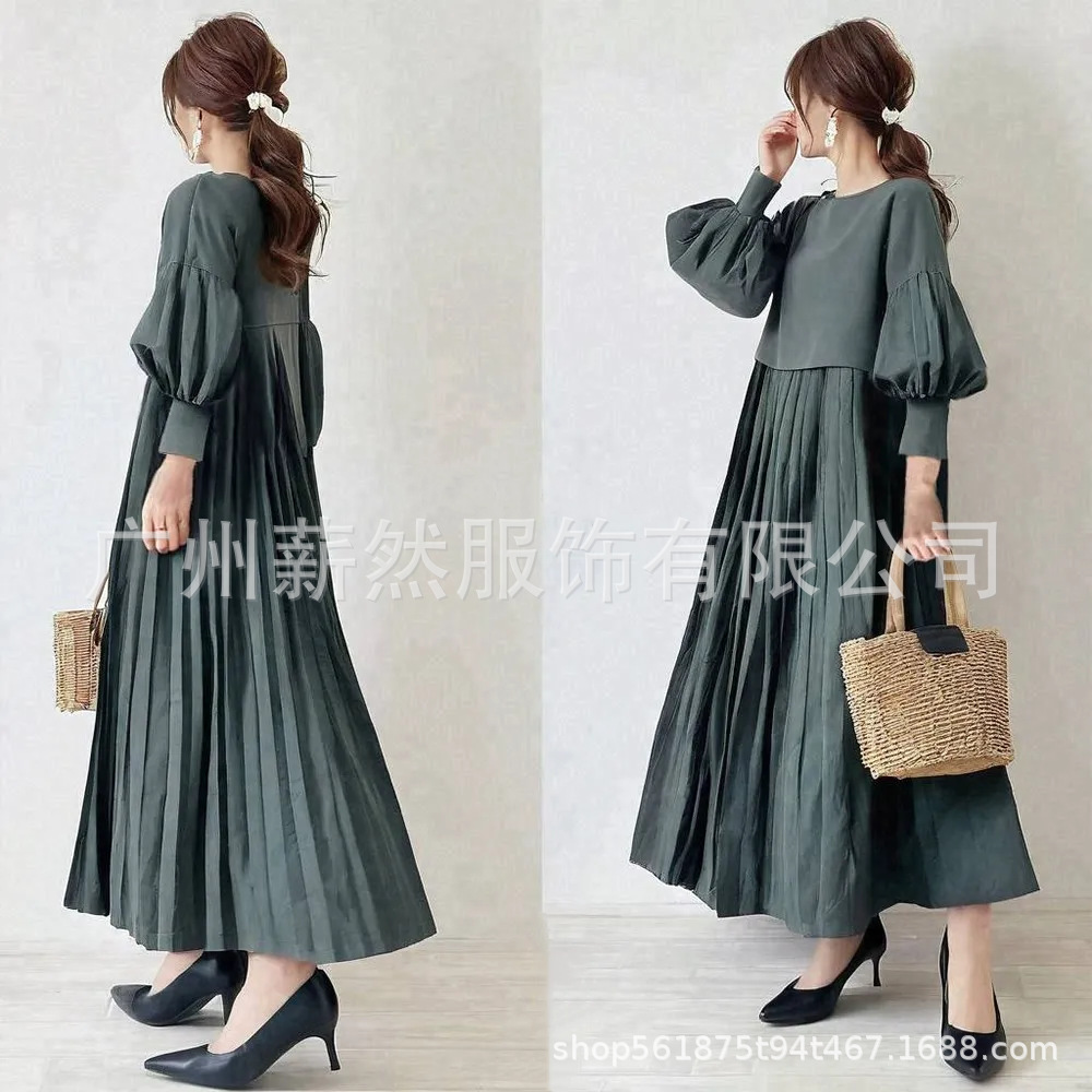 2025年最新トレンド!海外で大人気の、おしゃれで上品なランタン袖とプリーツが特徴のワンピース