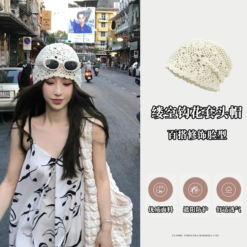 透かし彫りの日本の編み物のニットの帽子の女性の夏の薄い金の通気性は花の甘い文芸の復古の毛糸の帽子を飾ります。