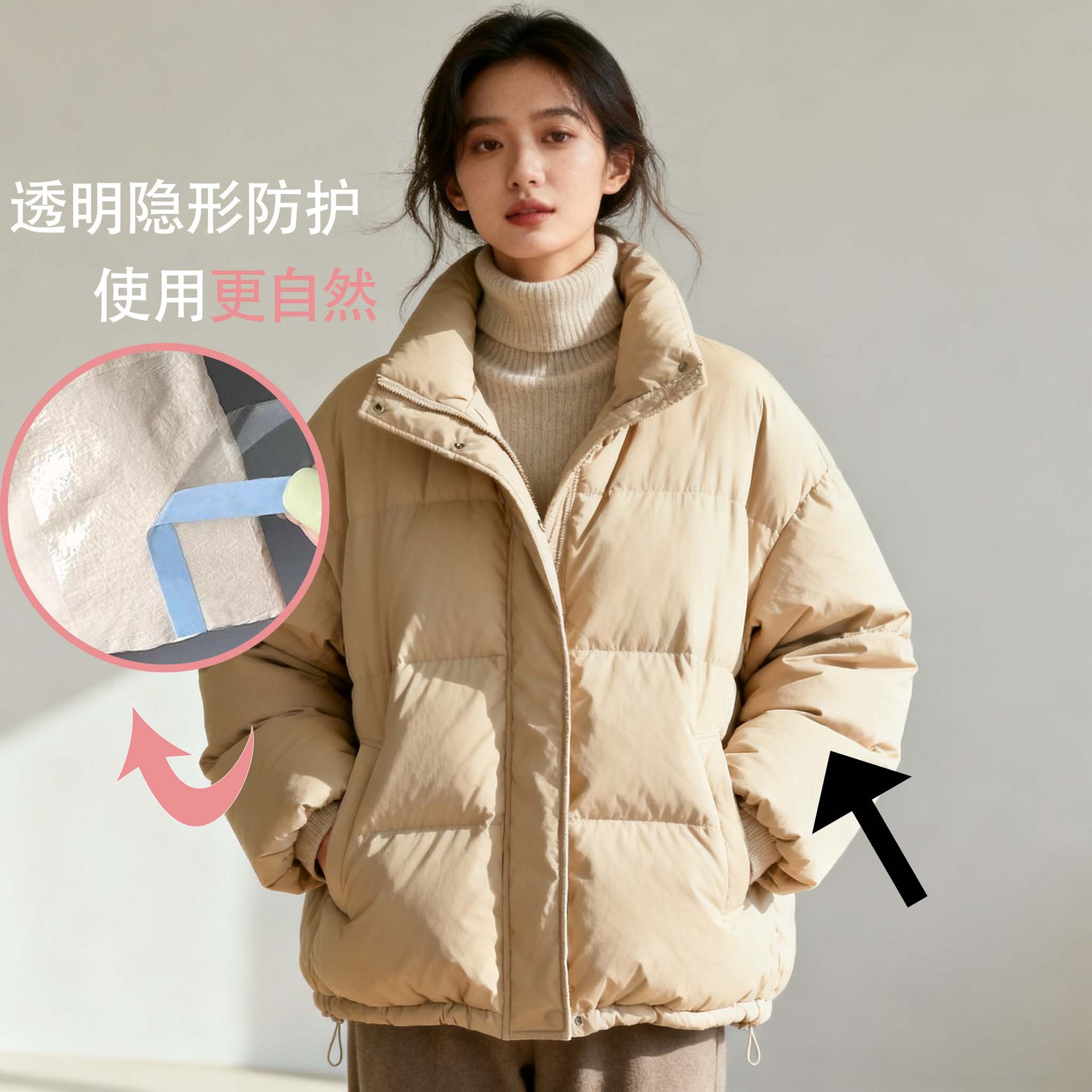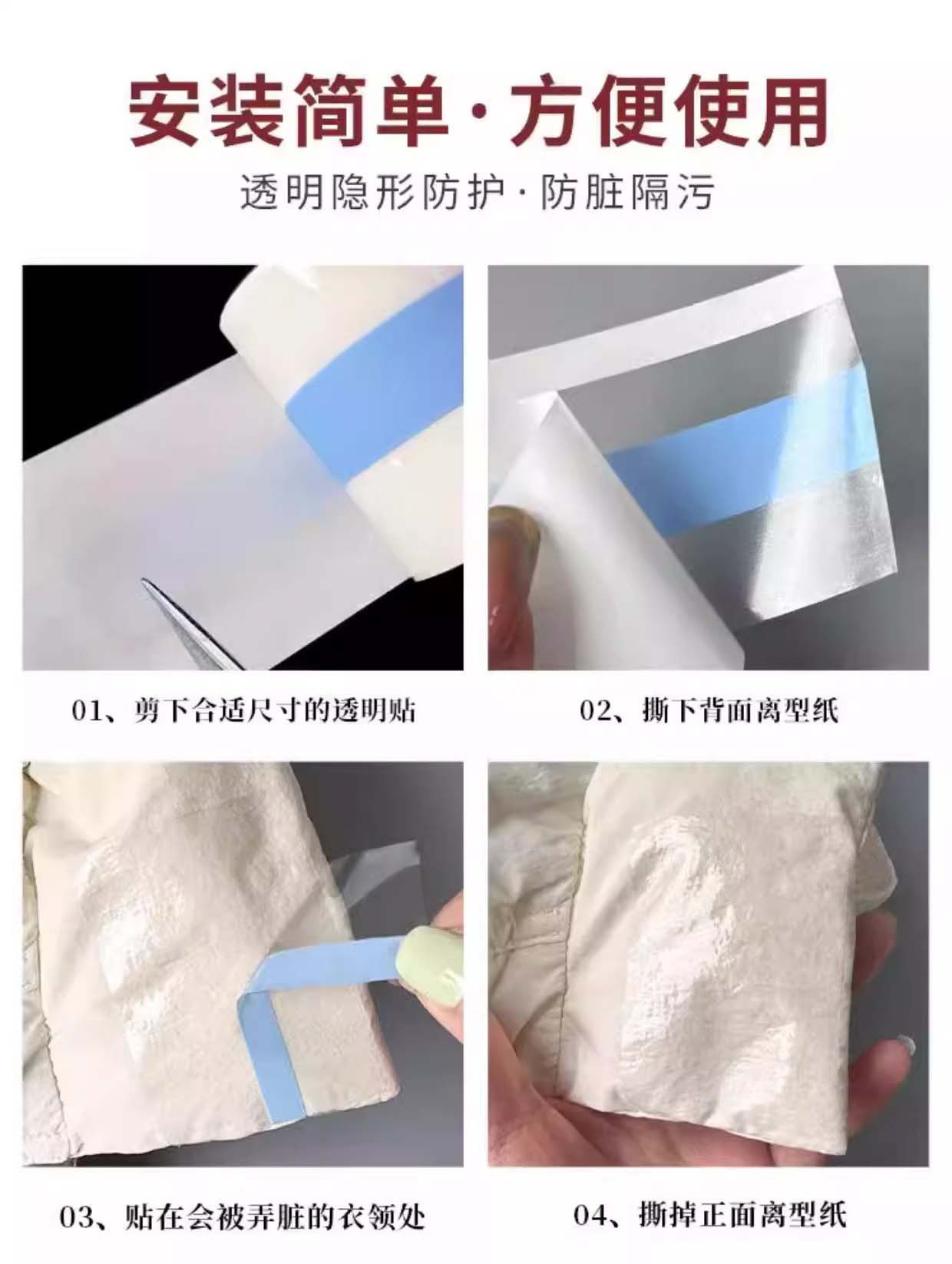 羽绒服衣领防脏贴pu防粉底贴PU膜防水隐形贴外套袖口透明防污渍贴