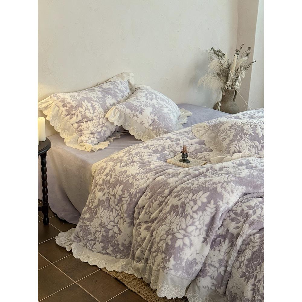 冬季加厚保暖牛奶绒四件套法式少女珊瑚绒法兰绒被套床单床上用品