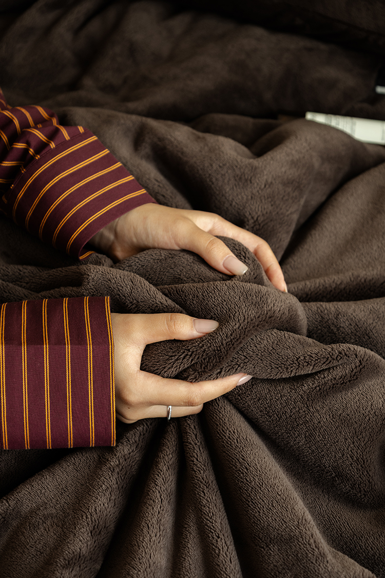 北欧シンプルなレトロな格子の高坪量のバイオニックカシミヤの四点セット秋冬保温全艶消し牛乳の毛セット