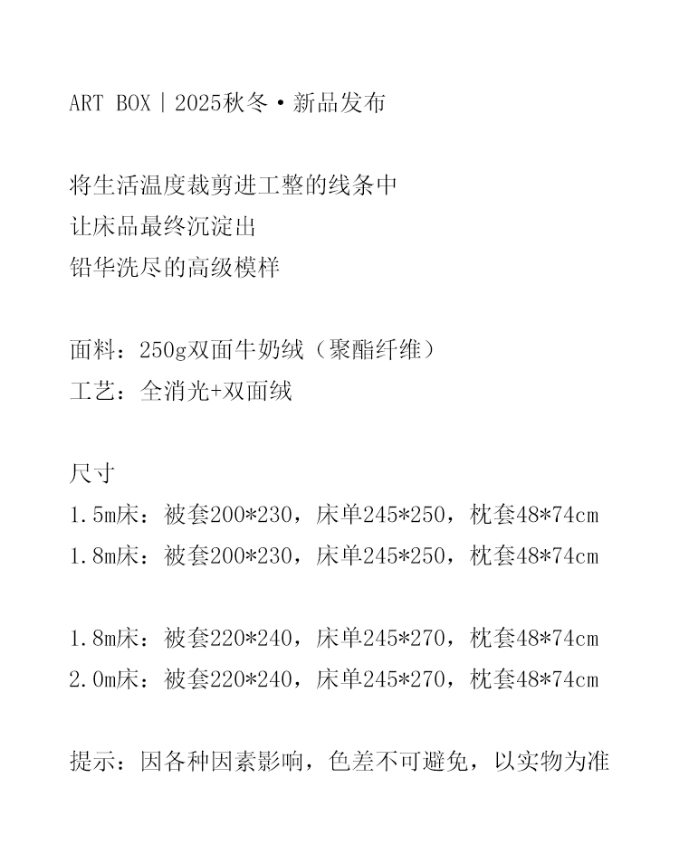 尺寸规格 1.5米床(适合200*230cm被芯),1.8米床(适合200*230cm被芯),1.8米床【适合220*240cm被芯】,2.0米床【适合220*240cm被芯】