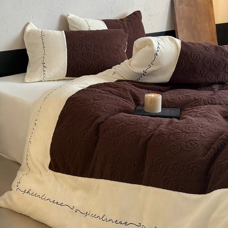 冬季高端法式保暖加厚320g牛奶绒雕花兔毛绒四件套被套床单床品