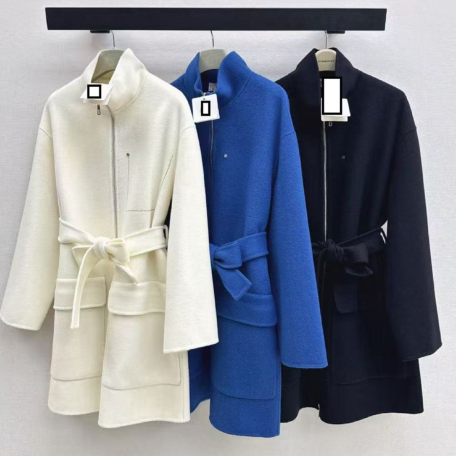 深圳南油25秋冬高端女装优雅百搭时髦立领式拉链系带大衣外套