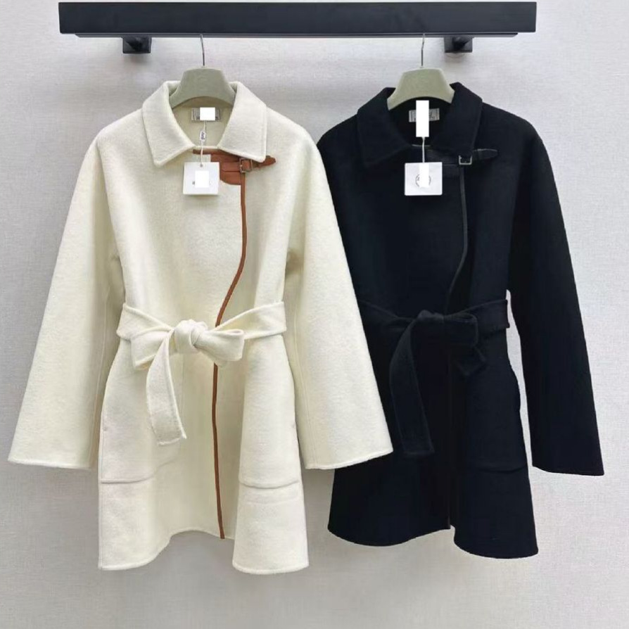 深圳南油25秋冬高端女装撞色凯旋门皮带装饰双面尼大衣外套