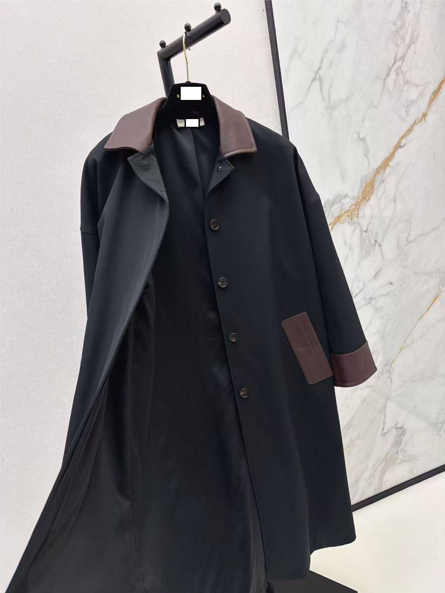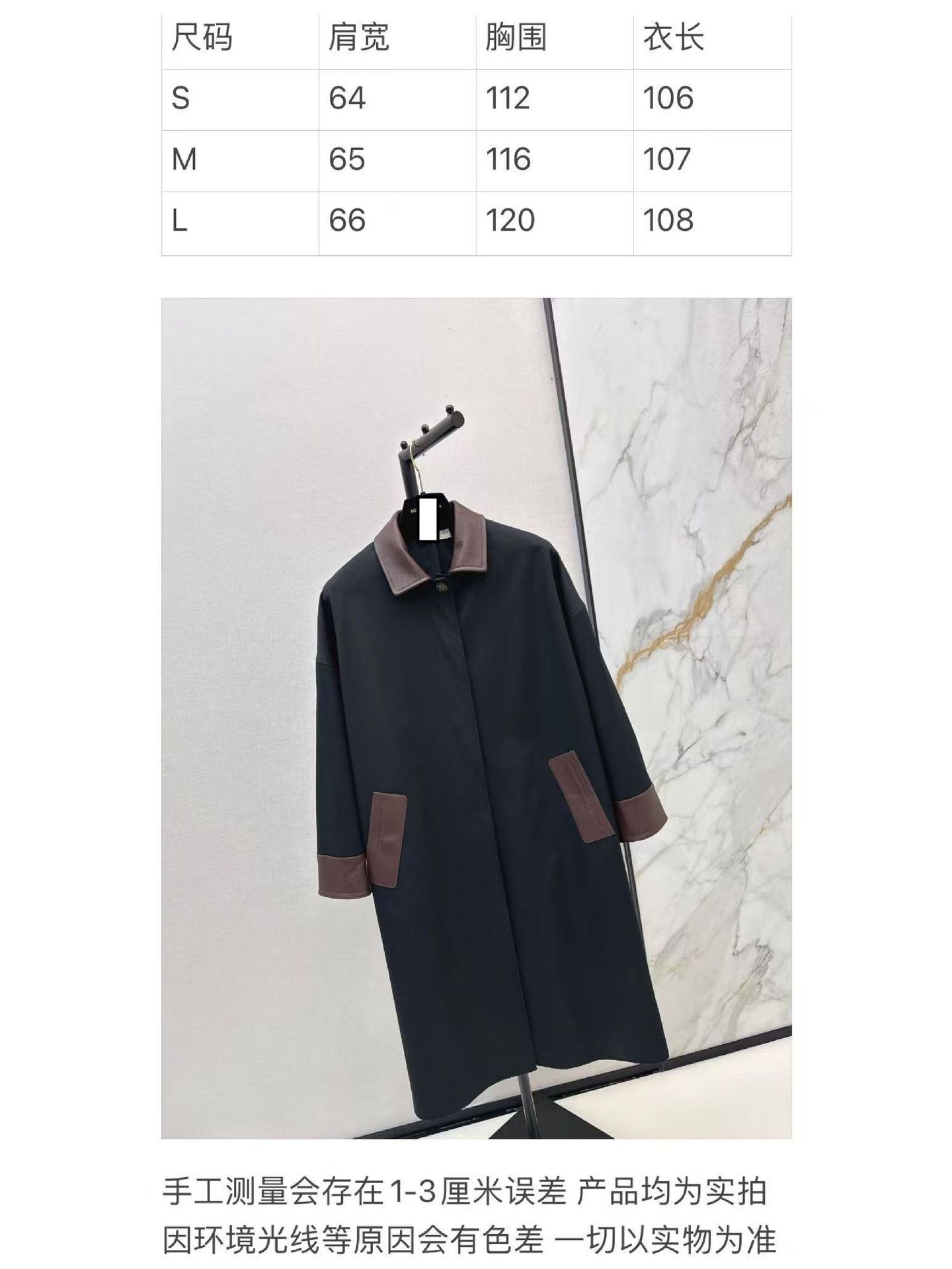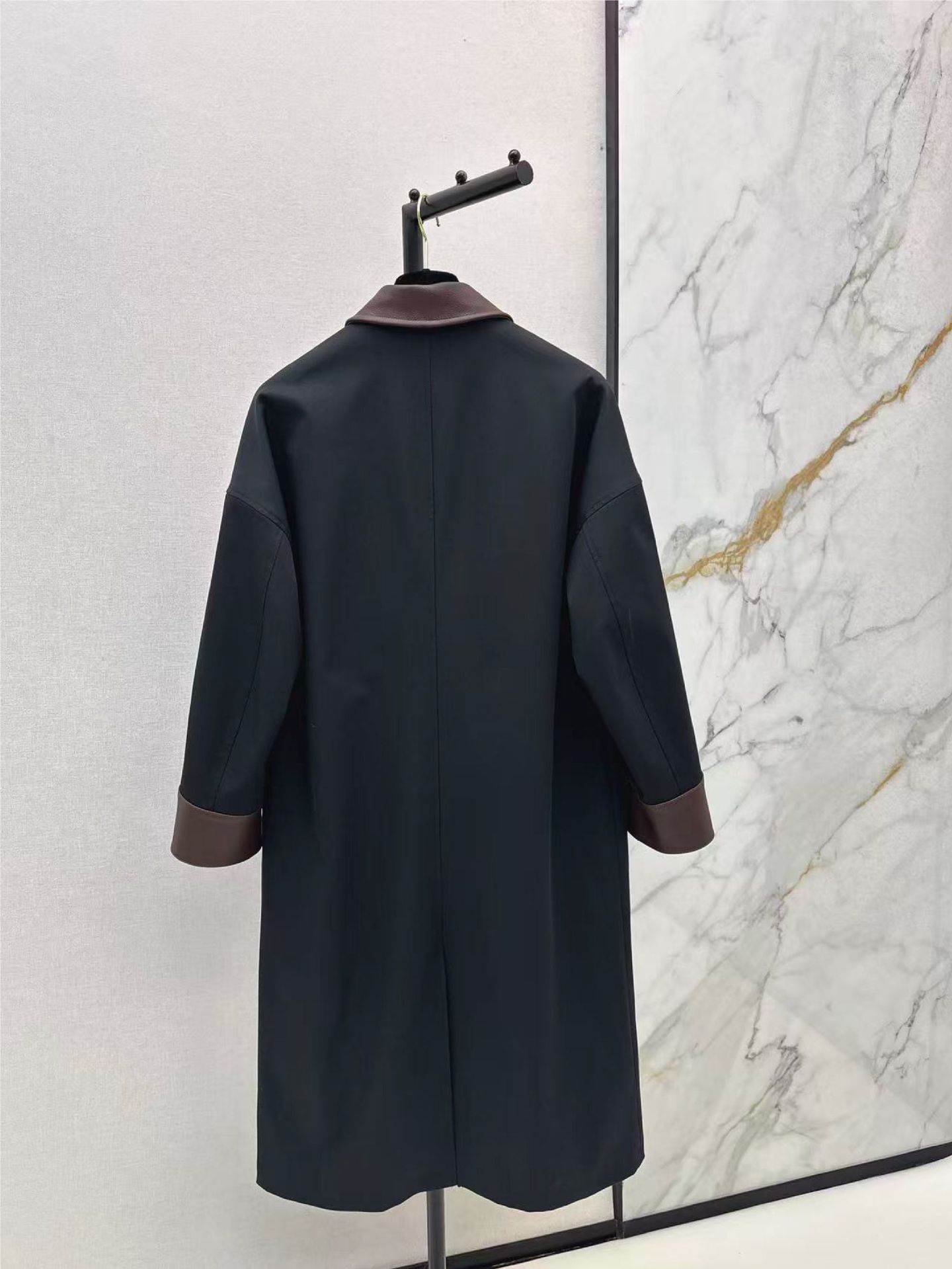深圳南油25秋冬高端女装优雅随性拼皮领工装口袋中长风衣