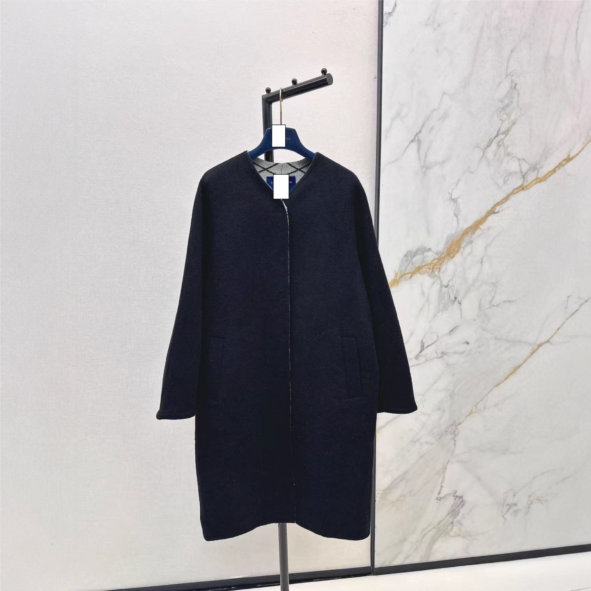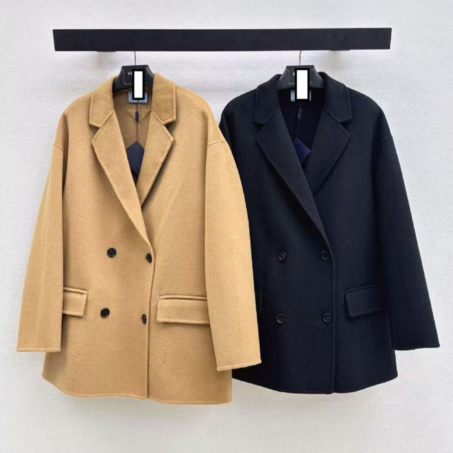 深圳南油25秋冬高端女装高级感百搭黑双面尼单排扣大衣