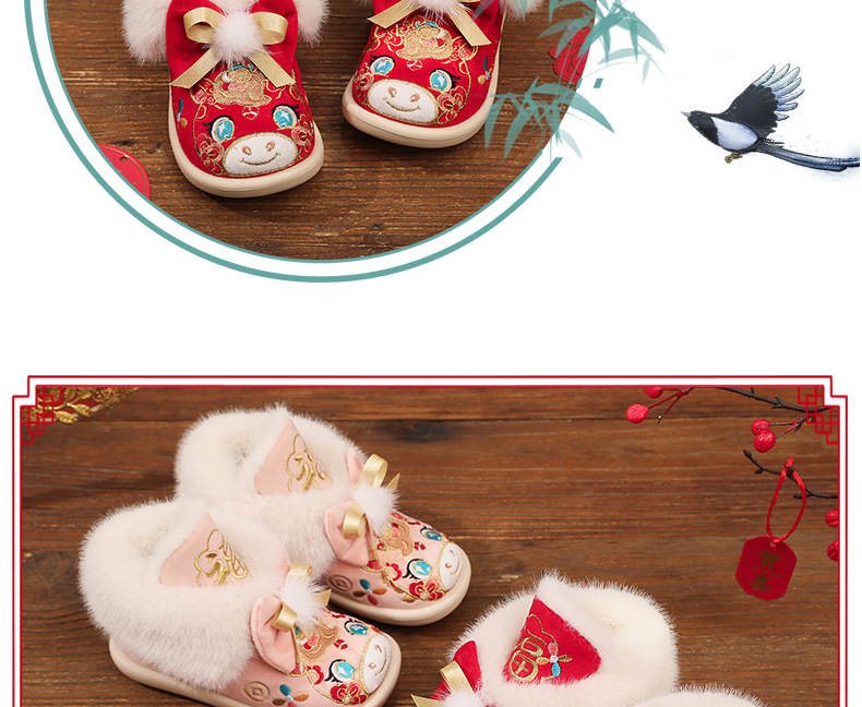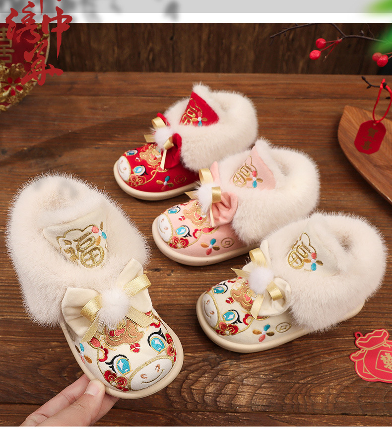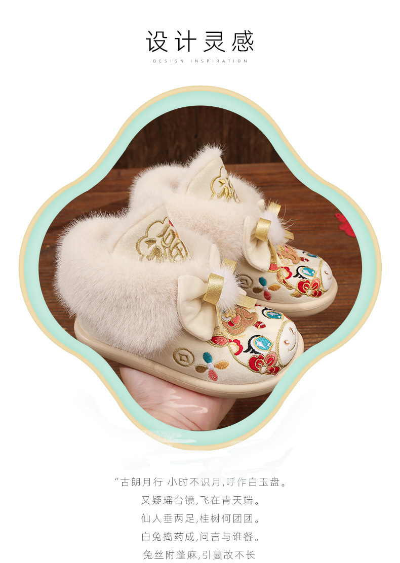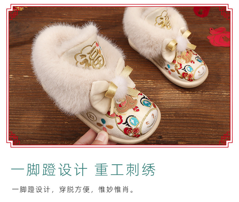 儿童汉服棉鞋舒适女童演出古风鞋一脚蹬棉布鞋加厚绣花鞋女童棉靴