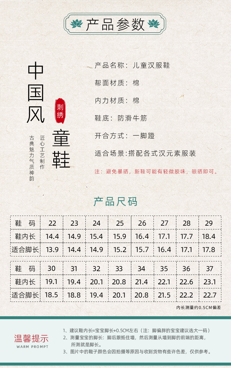 子供用漢服布靴、中国風漢服靴、唐装女児靴、古装風老北京布靴、刺繍靴