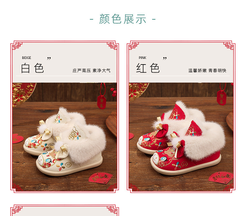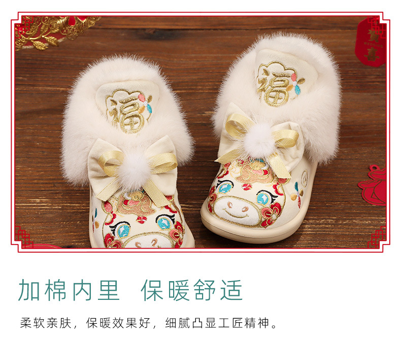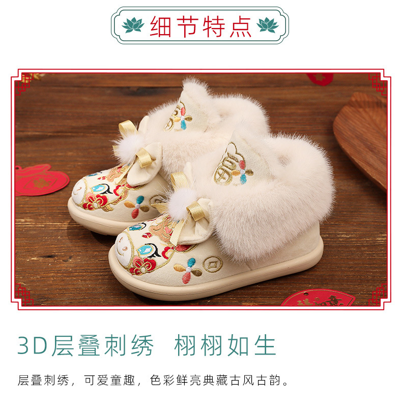 2025冬款儿童舒适古装鞋演出鞋 加绒加厚防滑古风汉服棉鞋超纤皮