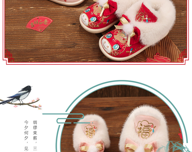 女童汉服鞋四季加绒儿童雪地靴民族风绣花鞋古装宝宝拜年中国风