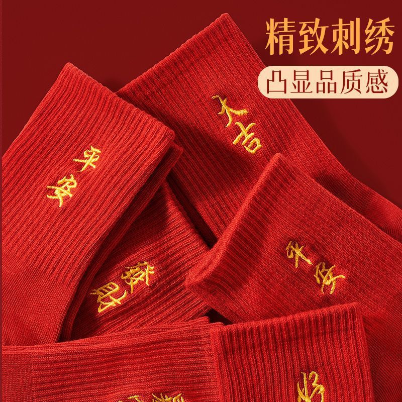 【200针同款优选】新年红袜子男女同款女棉袜秋冬中筒本命年礼盒