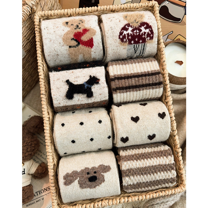秋冬季袜子女羊毛袜加绒加厚保暖中筒袜日系复古羊绒女生可爱长袜